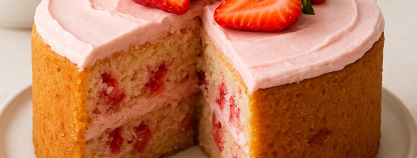 طرز تهیه کیک توتفرنگی با میوه تازه و اسانس توتفرنگی